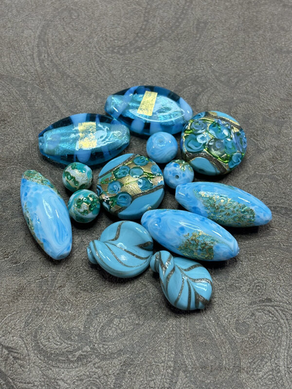 Beautiful Sky Blue, Gold Foil and Aventurine Beads
