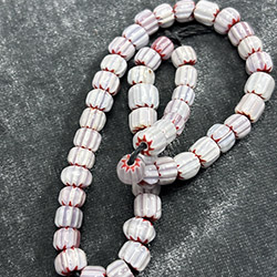 Vintage small 4- layer Rosetta chevron beads. White, red, white, clear. 1980’s.